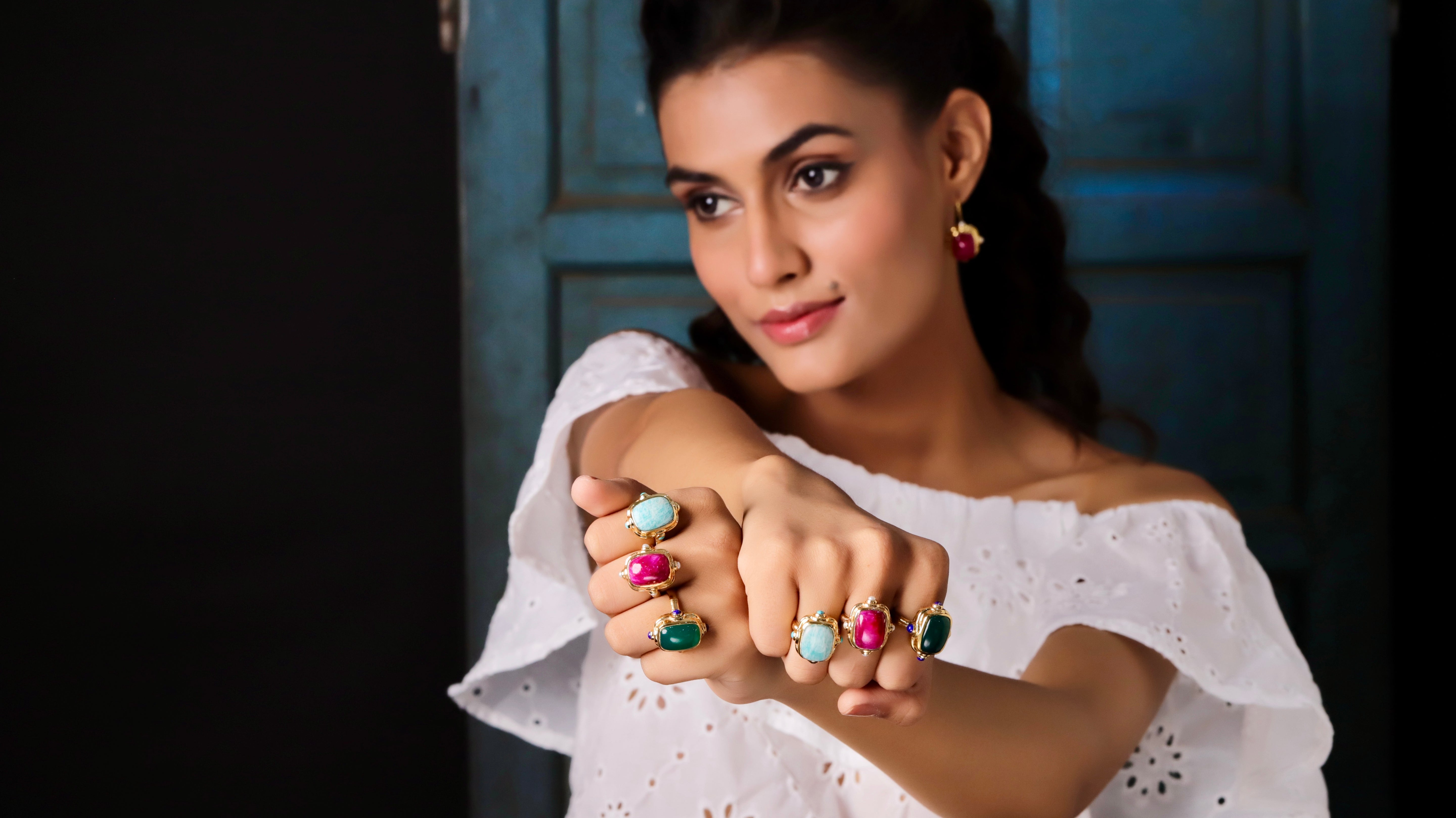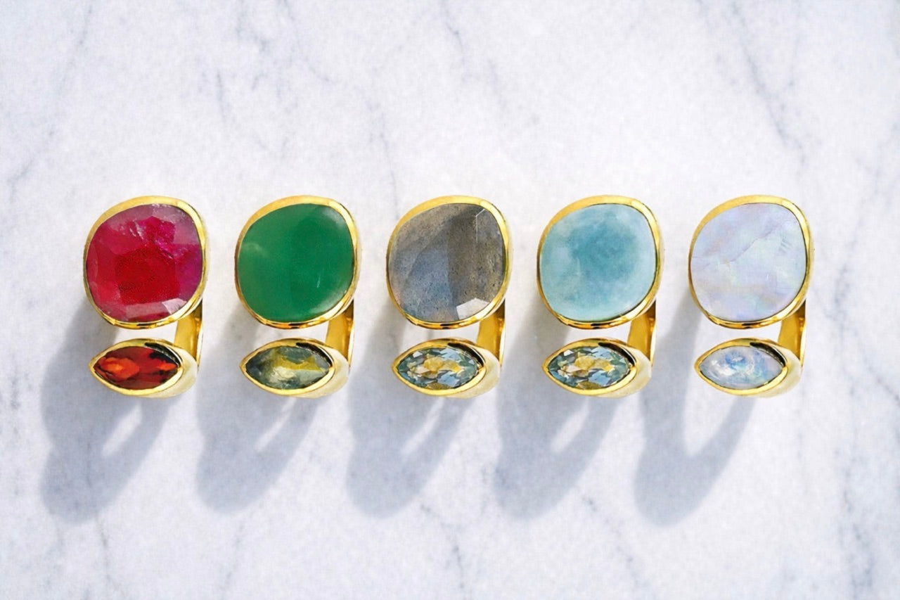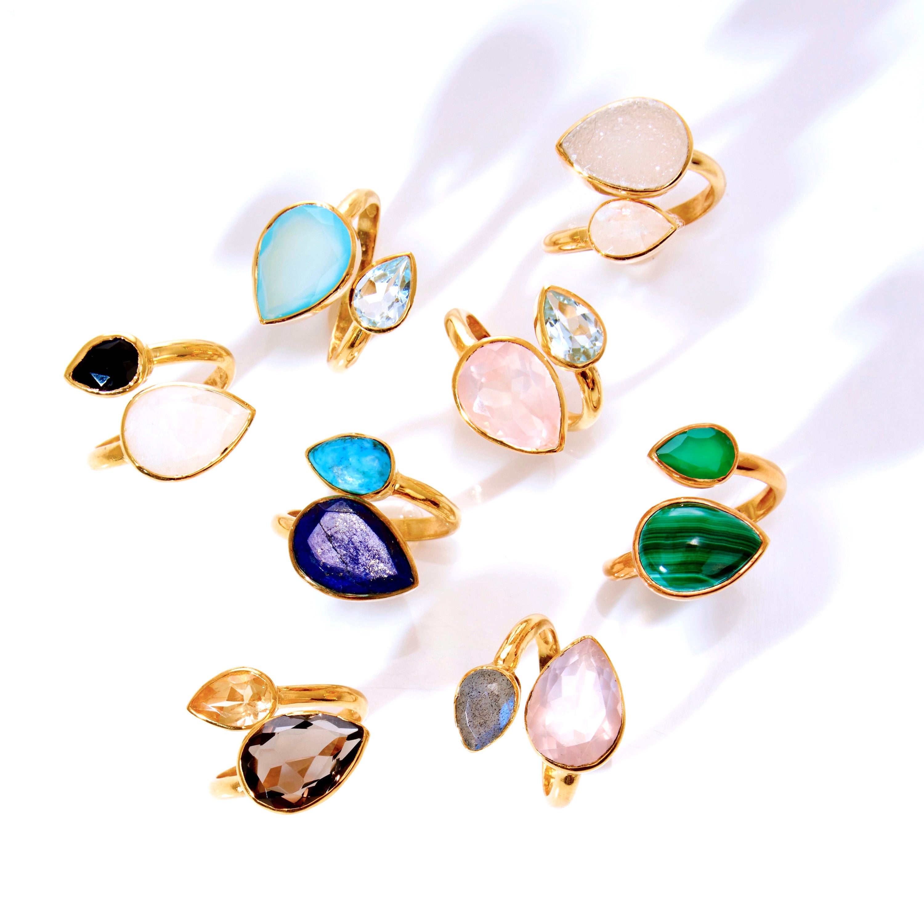 Twist Ring in Aqua Chalcedony & Blue Topaz