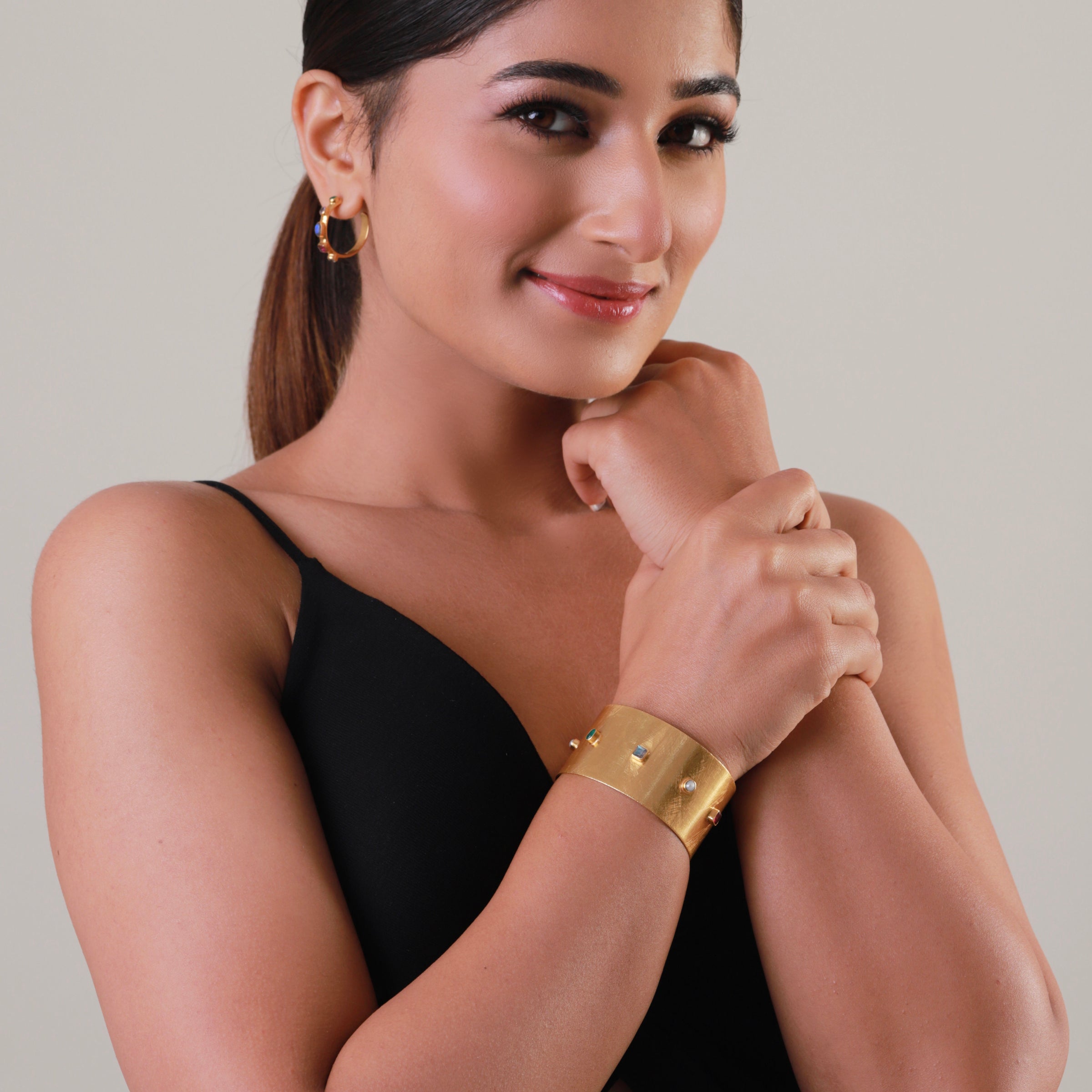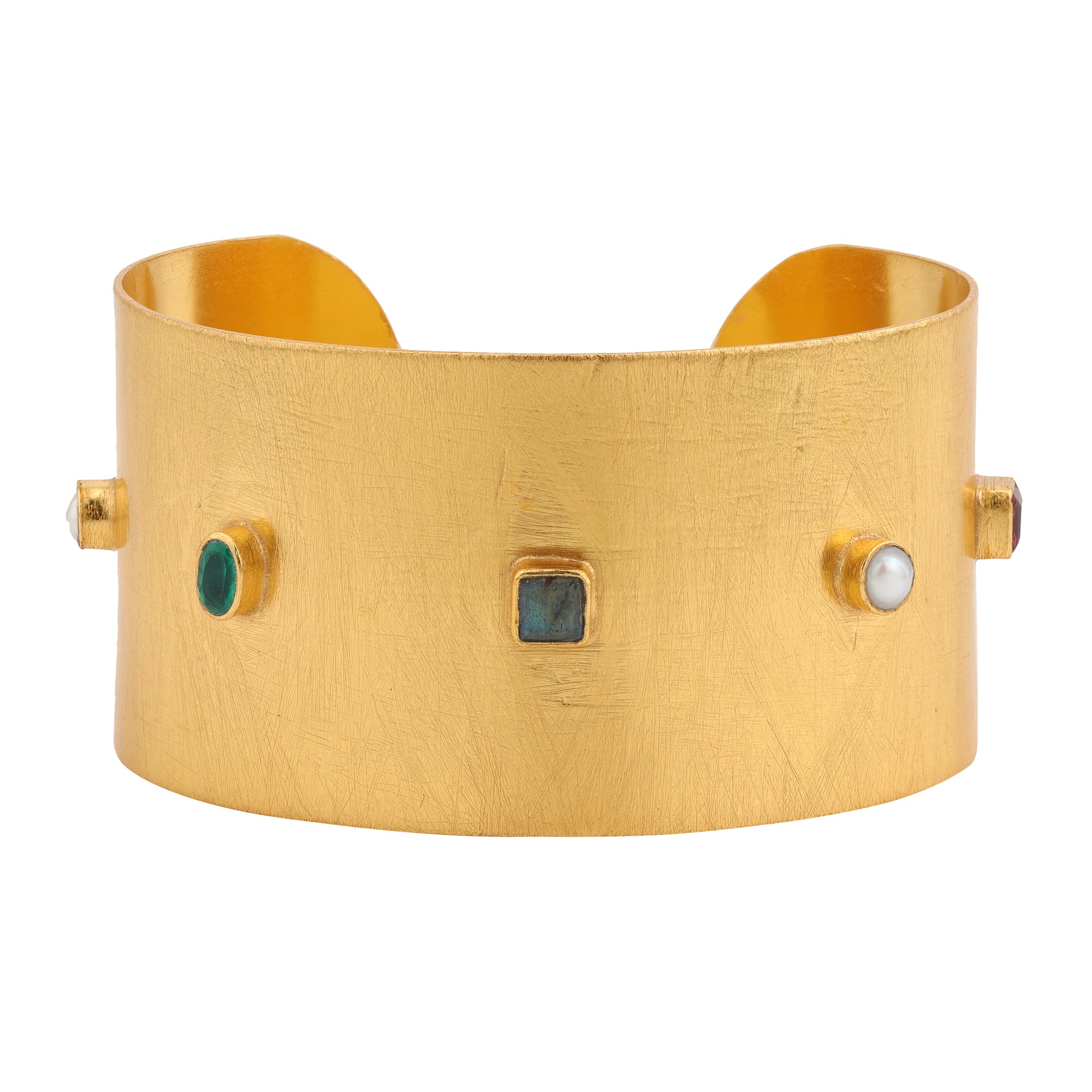 A bold slice of Tutti Frutti fun — this wide gold cuff is dotted with juicy pops of playful color.