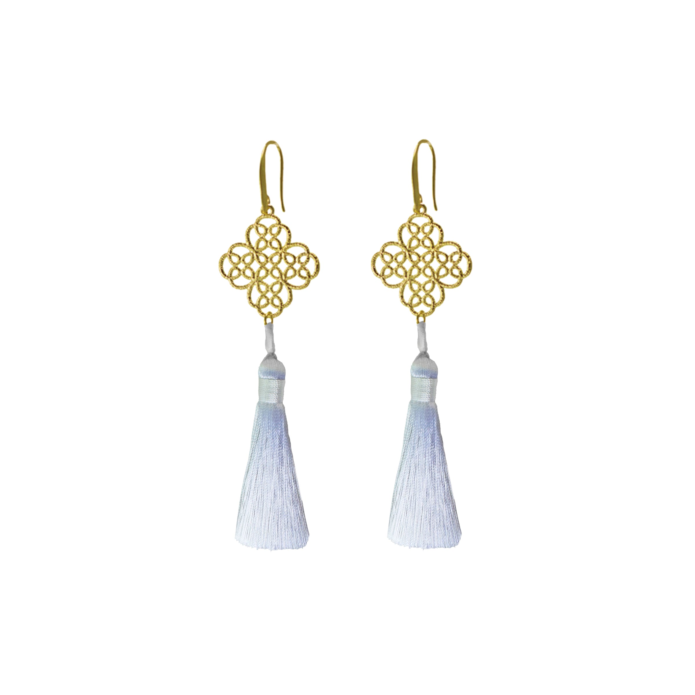 Add instant impact to your look with these gold filigree & silk tassel earrings.