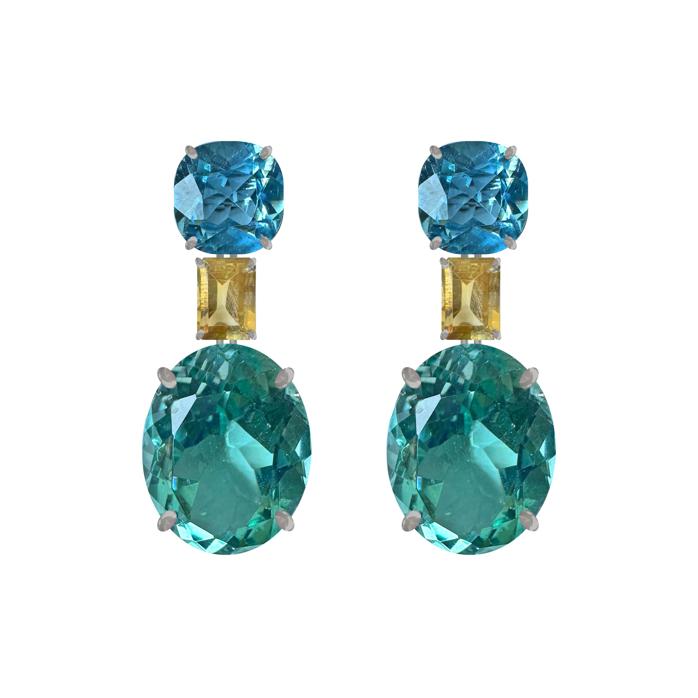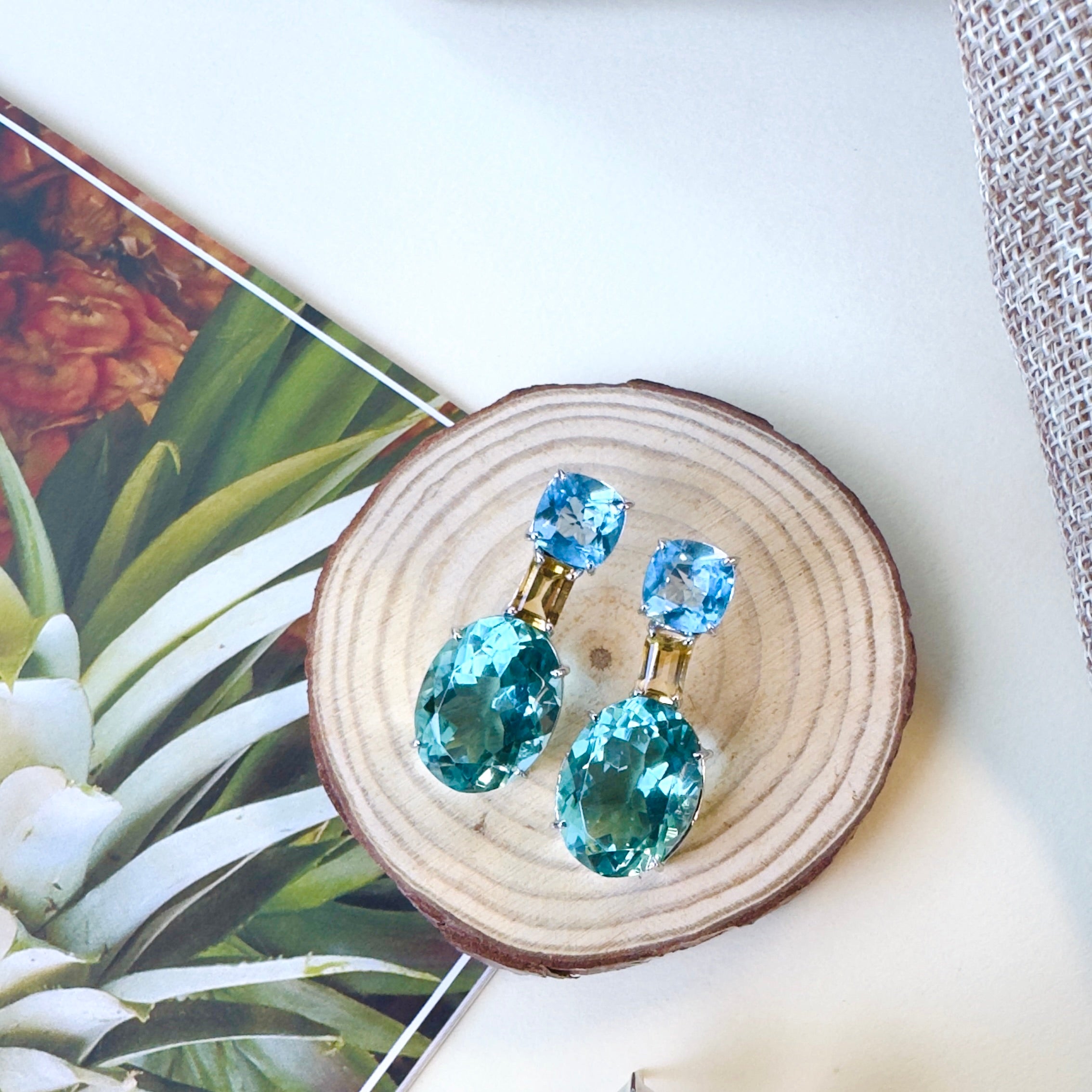 Earrings - Blue Topaz, Citrine & Indicolite Quartz Trio