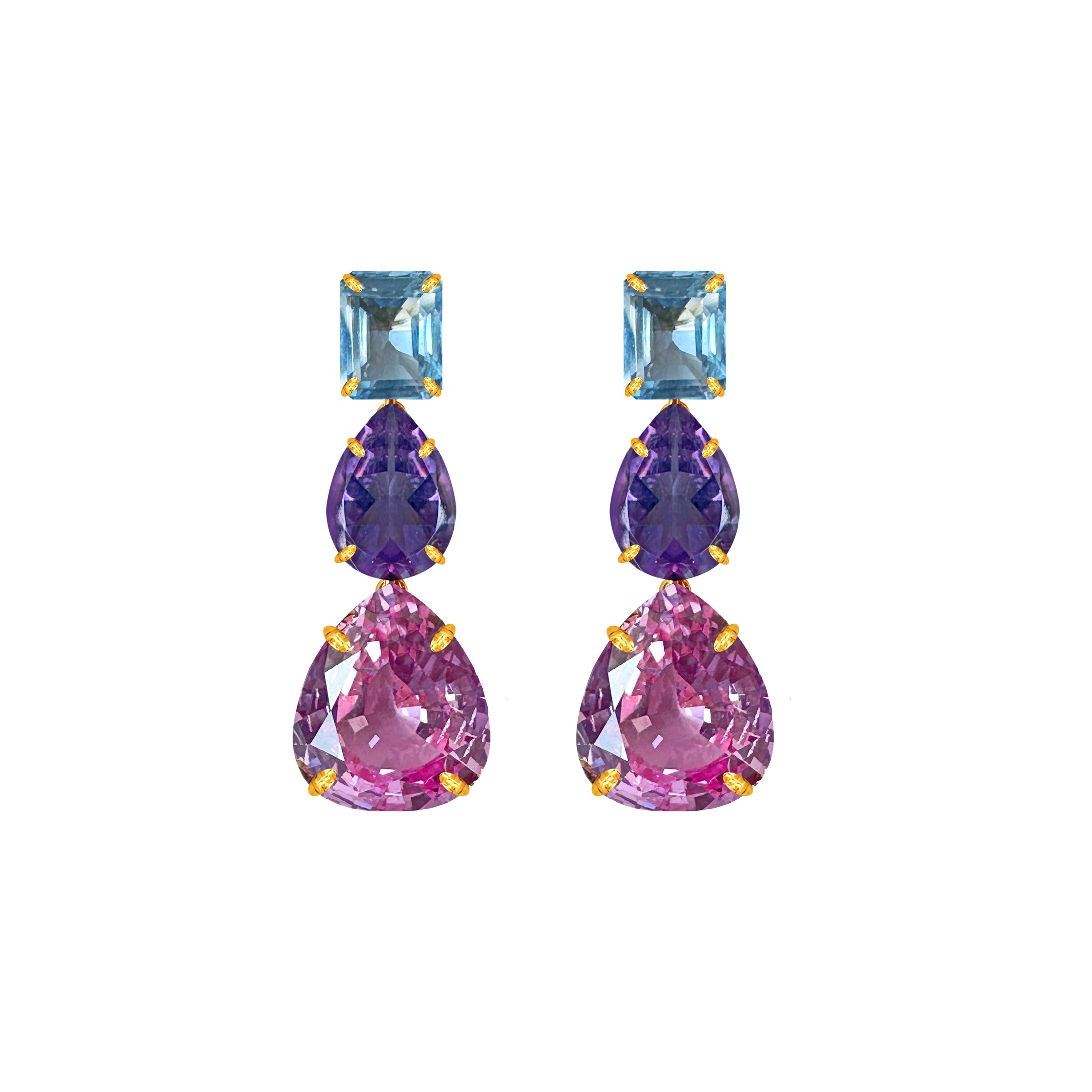 Earrings - Blue Topaz, Amethyst & Pink Topaz Trio