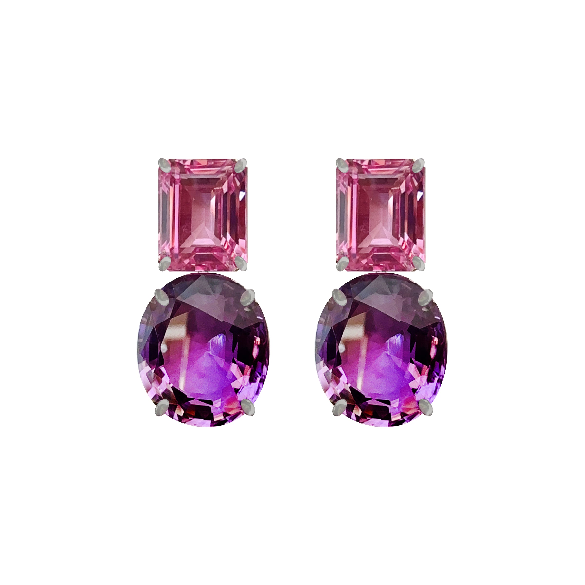 Earrings - Pink Topaz & Rose De France Amethyst Double Drops