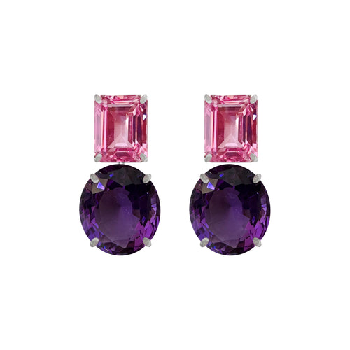 Earrings - Pink Topaz & Rose De France Amethyst Double Drops