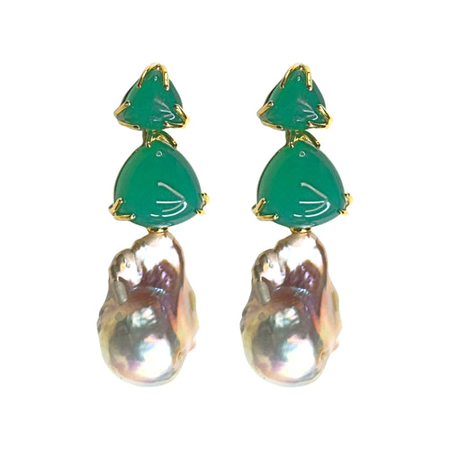 Earrings - Green Onyx, Ruby & Baroque Pearl Trio