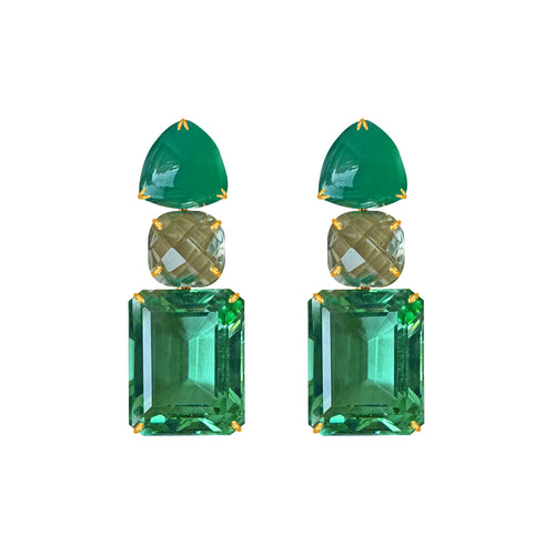 Earrings - Green Onyx, Prasiolite & Green Quartz Trio