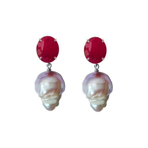 Earrings - Ruby & Baroque Pearl Drops