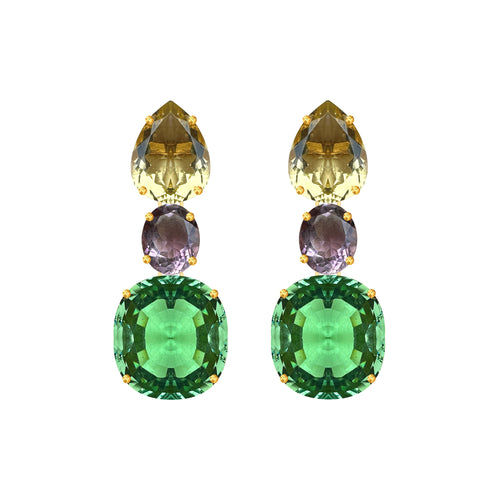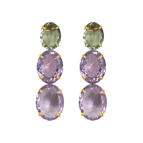 Earrings - Citrine, Amethyst & Green Quartz Trio