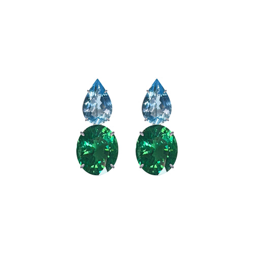 Earrings - Blue Topaz & Green Quartz Double Drops