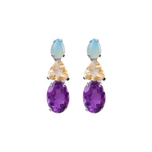 Earrings - Citrine, Pink Topaz & Aquamarine Trio