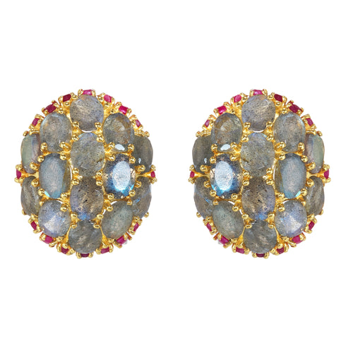 Earrings - Begum Circles in Blue Topaz & Labradorite
