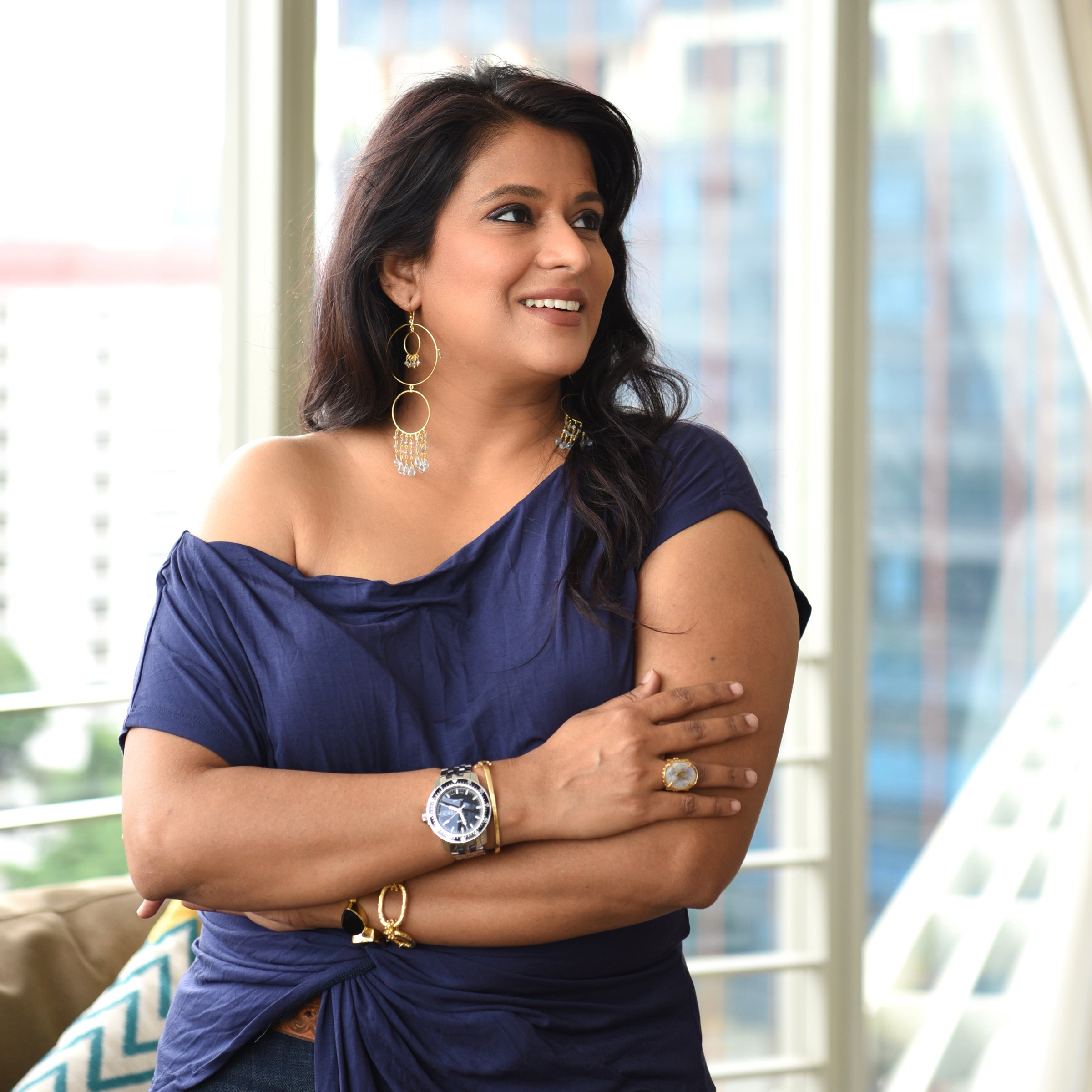 Earrings - Begum Circles in Blue Topaz & Labradorite