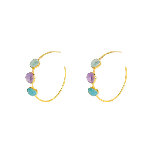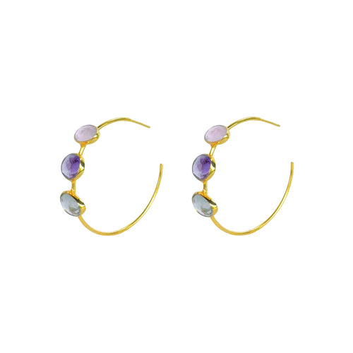 Earrings - Amethyst, Prasiolite & Rose Quartz Hoop