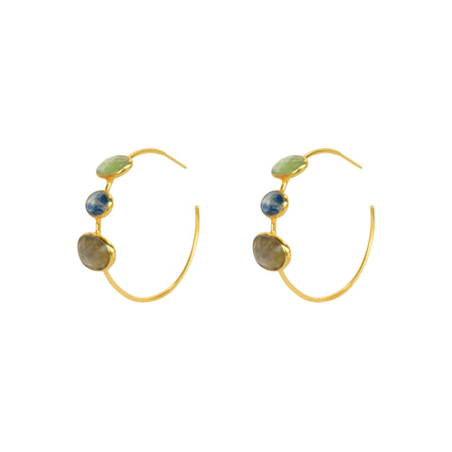 Earrings - Labradorite, Green Kyanite & Blue Kyanite Hoops