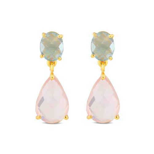 Earrings - Isolde - Blue Topaz & Rose Quartz