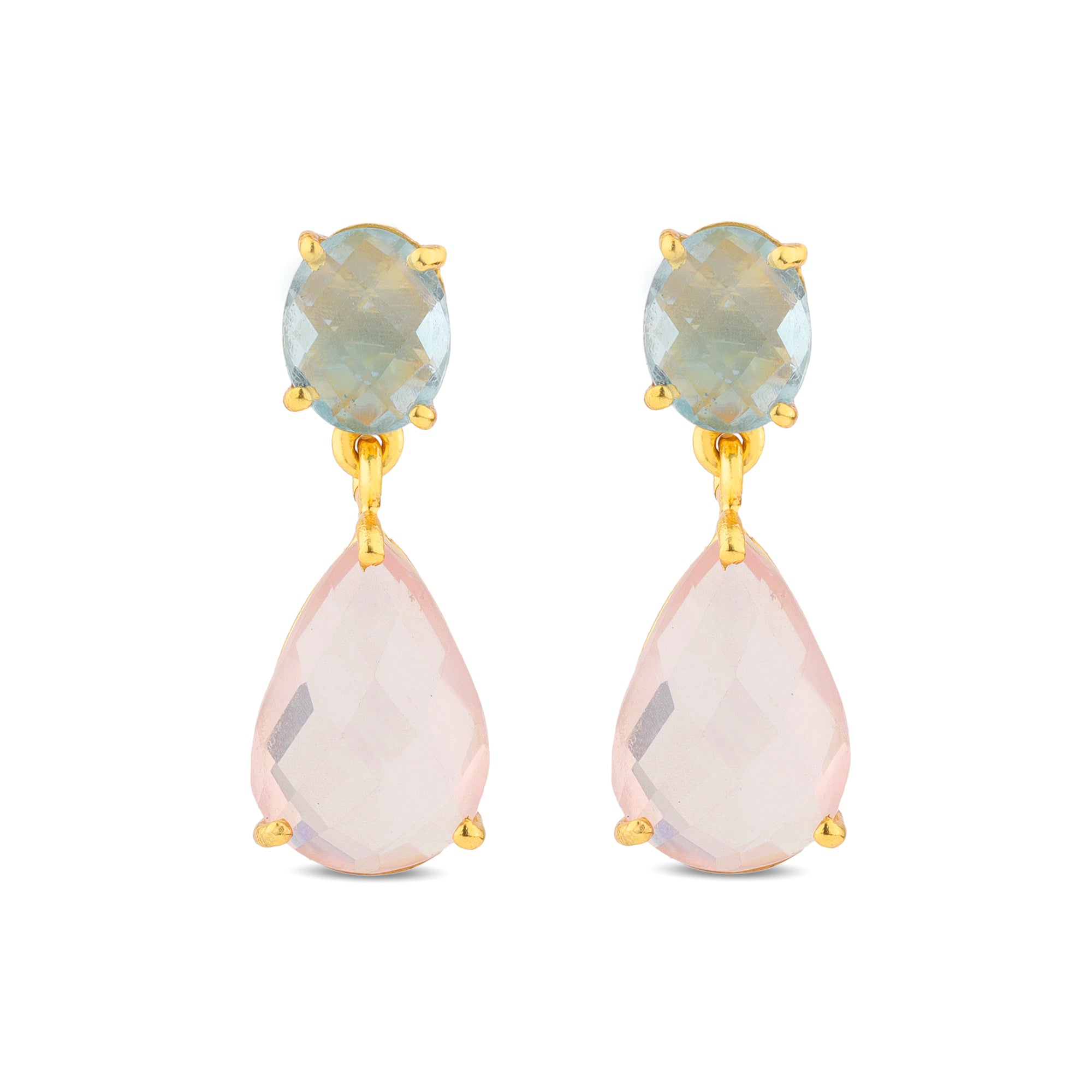 Earrings - Isolde - Blue Topaz & Rose Quartz