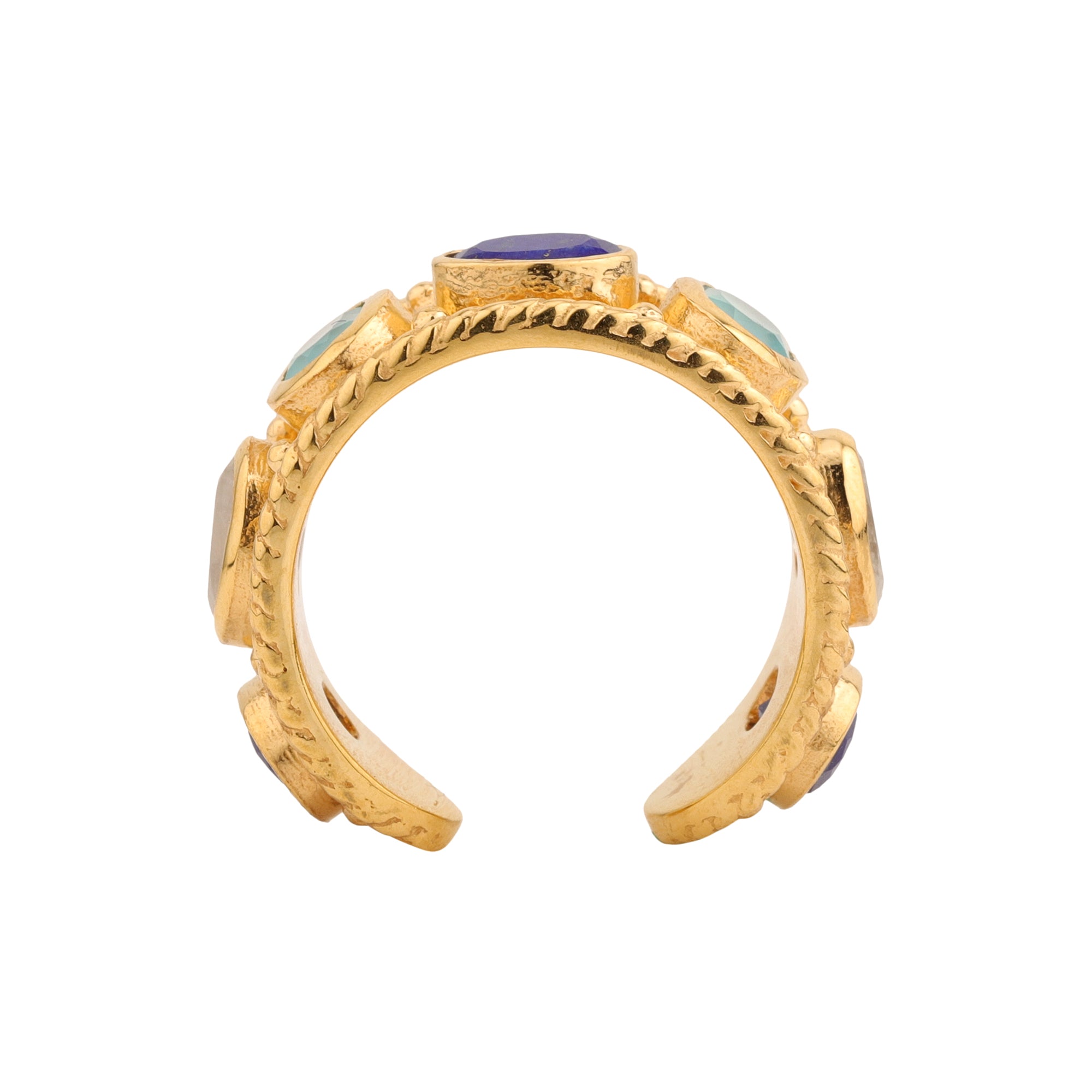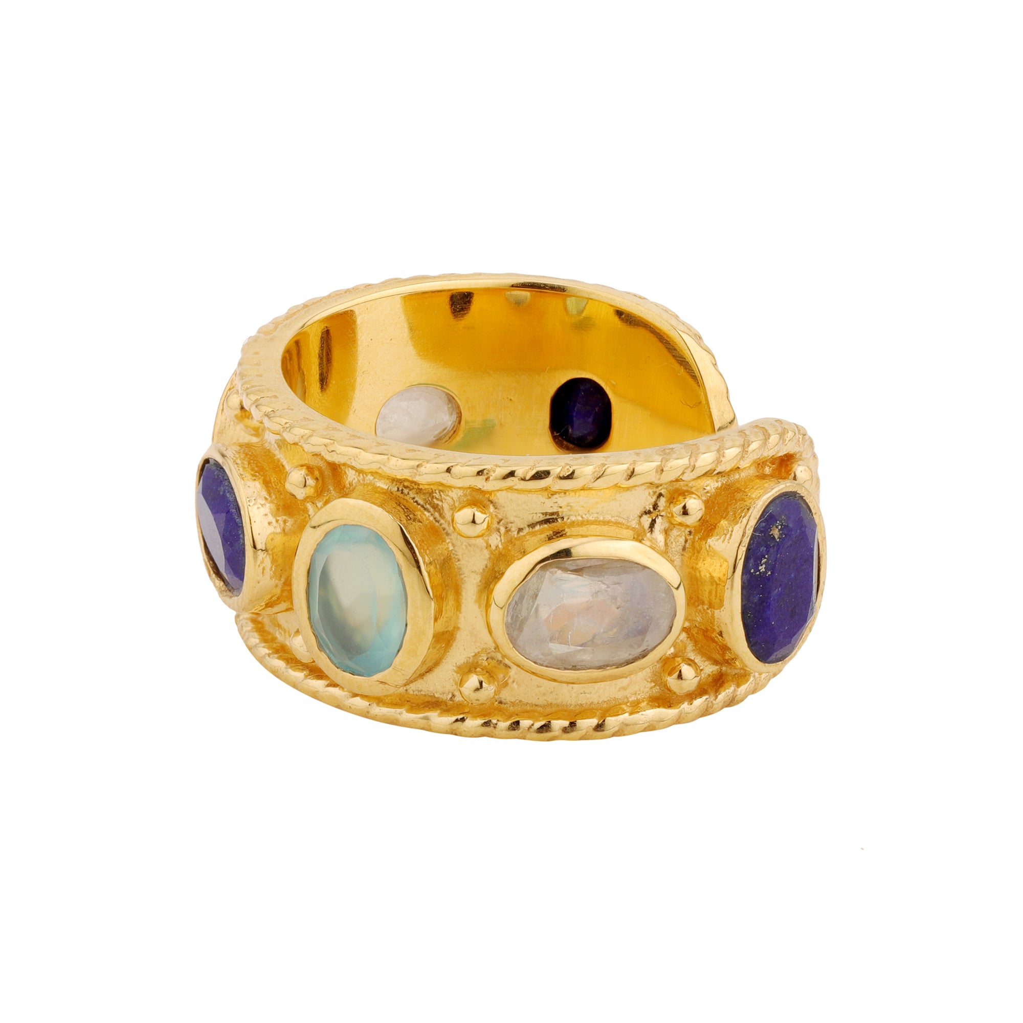 Textured, colorful, and impossible to ignore — the Tutti Frutti Mezzano ring pairs rope-edged gold with a medley of bright gemstones, giving it that perfect sweet-and-spice balance.