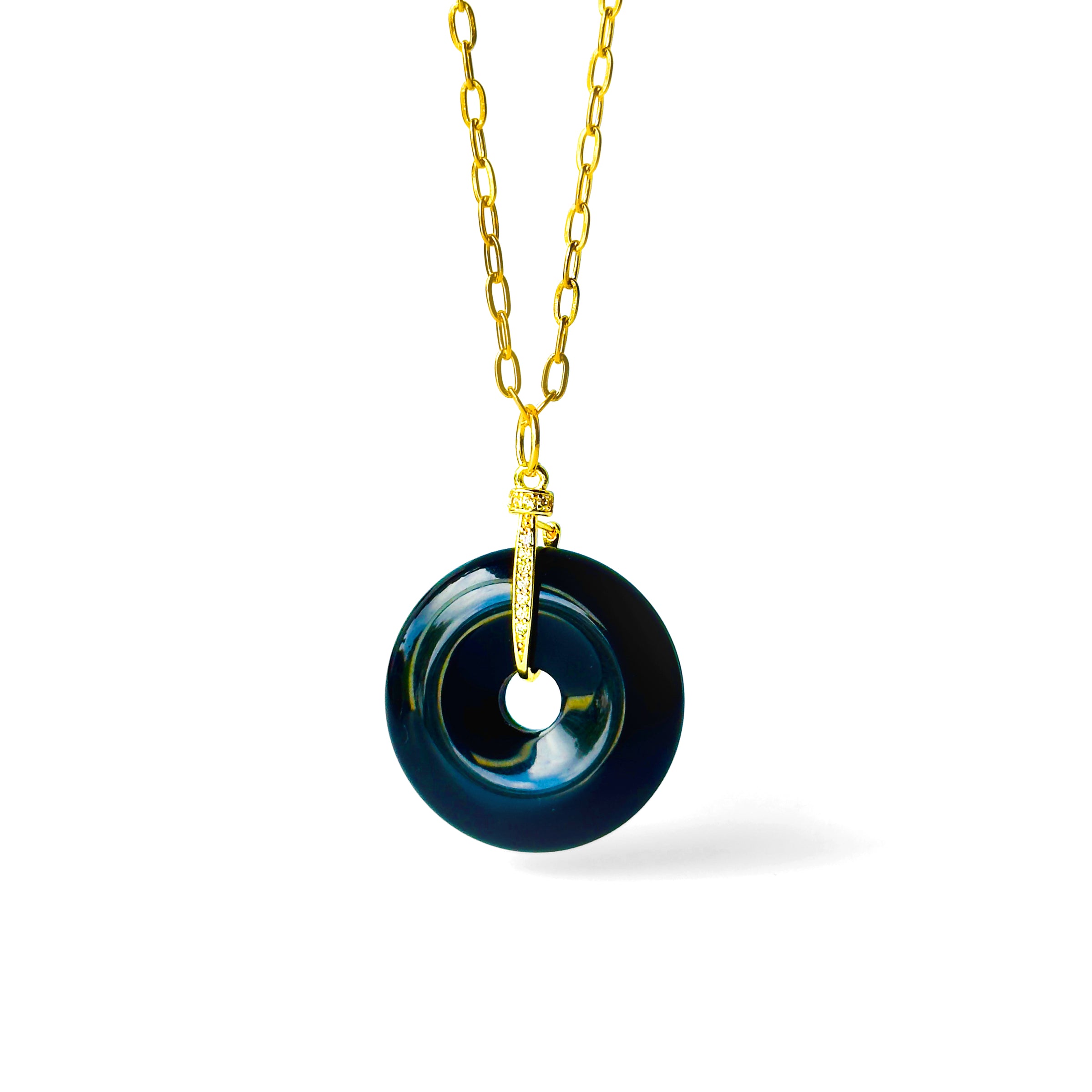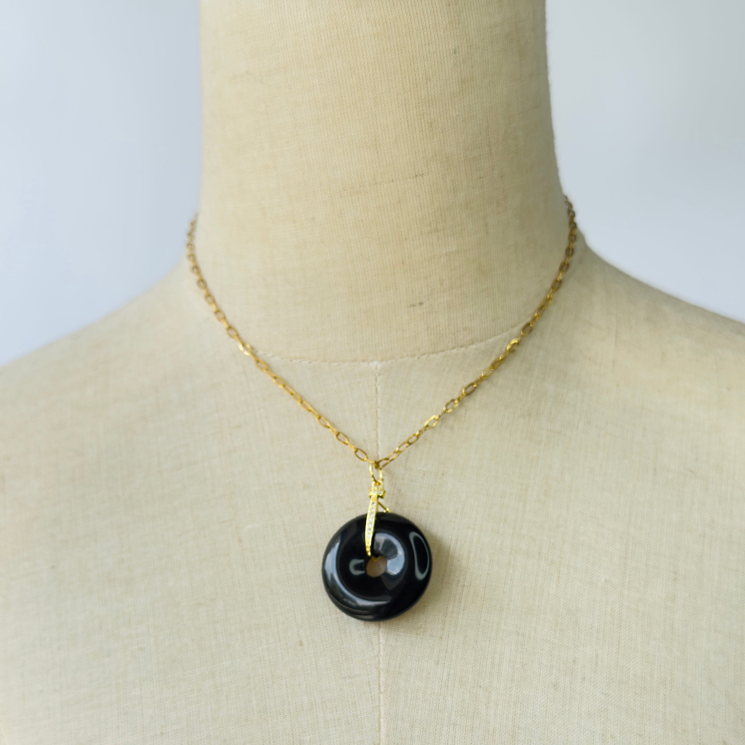 - Black Onyx Pi Donut Disc with zirconia clasp