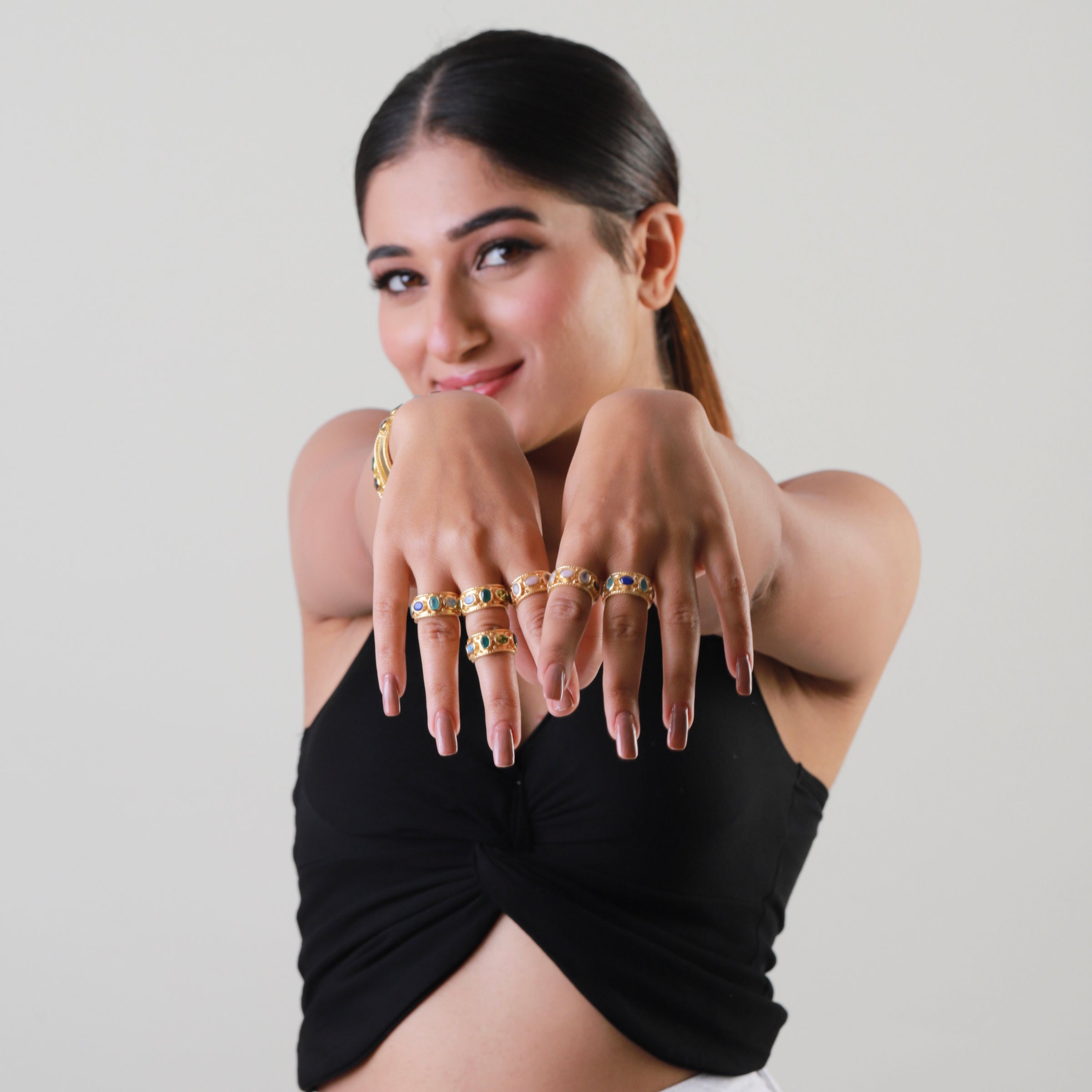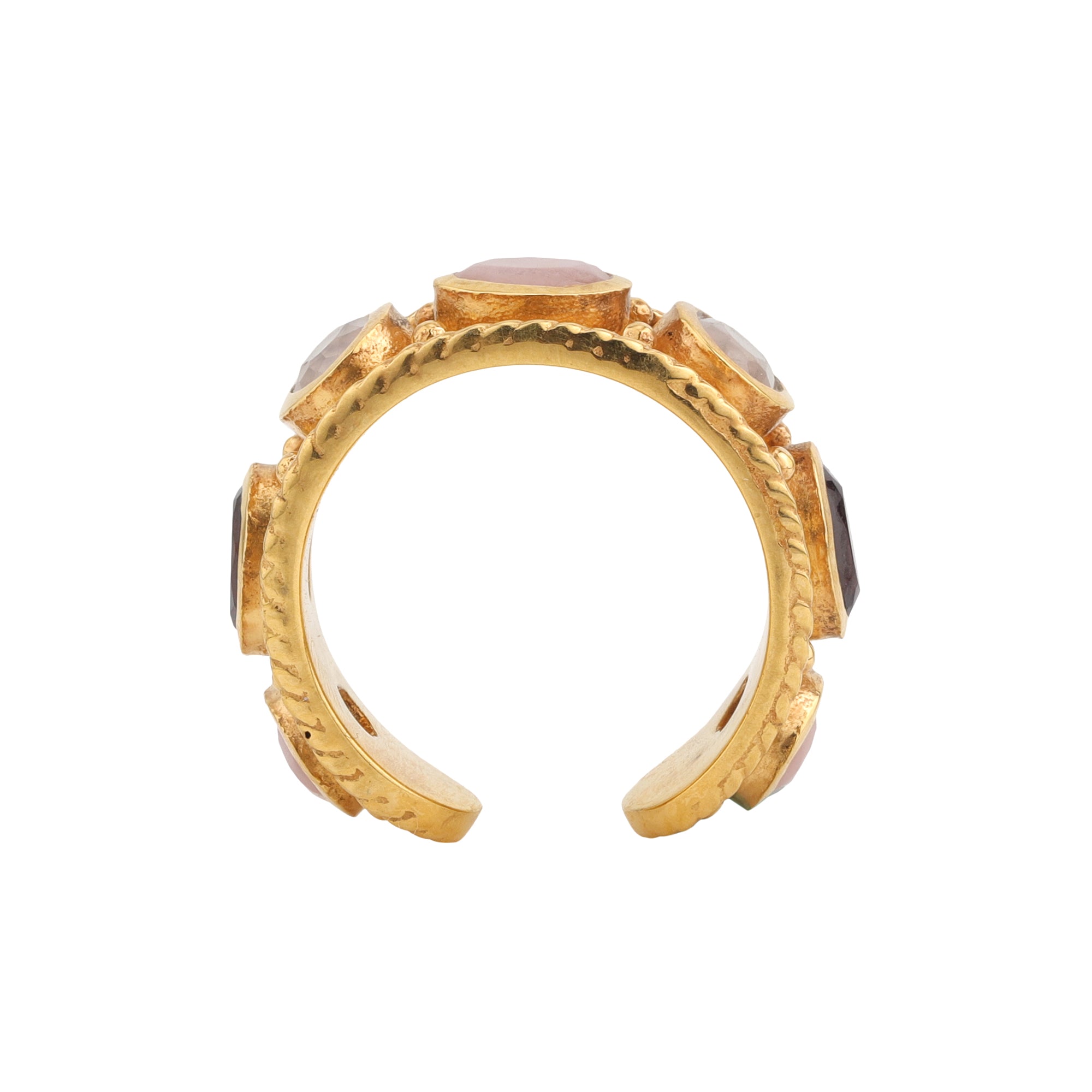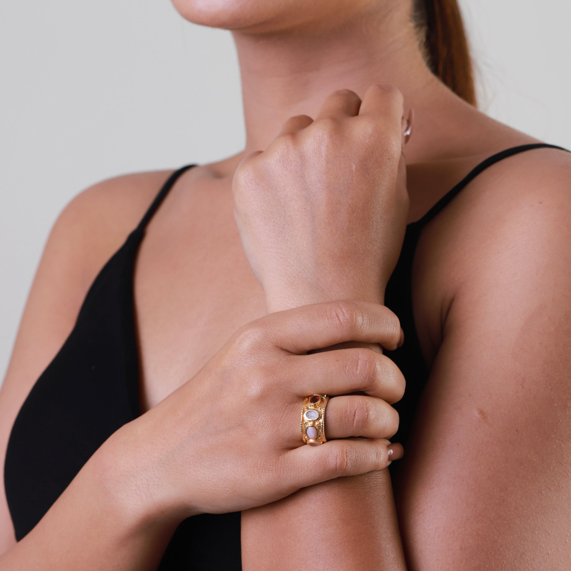 Textured, colorful, and impossible to ignore — the Tutti Frutti Mezzano ring pairs rope-edged gold with a medley of bright gemstones, giving it that perfect sweet-and-spice balance.